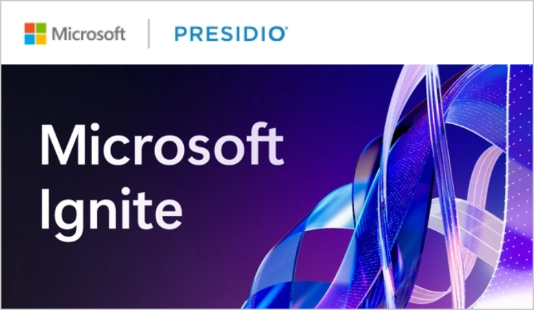 Presidio is a Showcase sponsor of Microsoft Ignite 2025, and we are excited to meet you at BOOTH #5260. As a Microsoft partner, our Presidio team is available to discuss how we can assist you in your digital journey, with a focus on: Copilot Implementation and Customization, Fabric and Data, Cloud Solution Provider (CSP) services, Azure VMware Solution Migrations, Generative AI and HAI, Cloud Innovation and more.