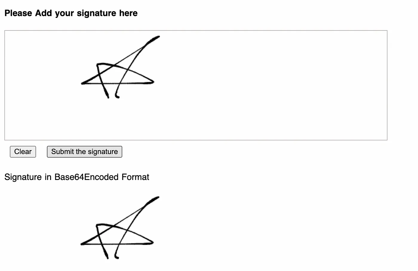 Then create two buttons, one for clearing the signature and one for submitting the signature as base64 Encoded value.